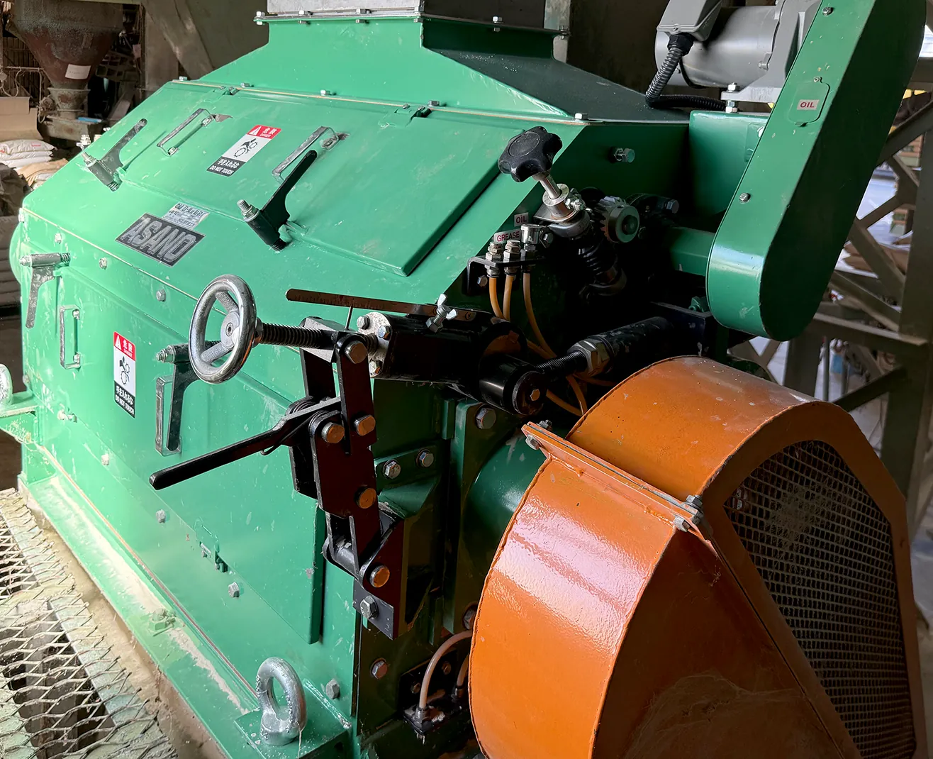 浅野鐵工所の製品を50年以上前から導入しています。ここでは養鶏で使用する飼料を製造しており、メイズ(トウモロコシ)などの原料を粉砕し、副原料を混ぜて製造しています。当工場では、「ST103型 ロータリーシフター」でふるい、「RM-50型 ロール粉砕機」で粉砕し、「VR型 リップルセパレーター」で異物を取り除くチェックぶるいを行っており、飼料製品の製造には欠かせません。ロール粉砕機は2022年に機械を更新しましたが、ロータリーシフターとリップルセパレーターは50年以上現役で活躍しており、機械そのものは丈夫で故障がありません。網の交換や本体支持部分などに不具合が発生した時には、連絡するとすぐに専属の職人さんが来てくれ、現地で溶接したり修理してくださるので、アフターケアが完璧です。いかなるトラブルも解決してくださる安心感があります。粉砕機のロールを年に一回目立てし直して下さったり、ふるい網も以前は木枠でしたが、摩耗防止のため、改造していただいたり、メンテナンスが素晴らしく満足しています。私たちの工場には、なくてはならない機械達です。