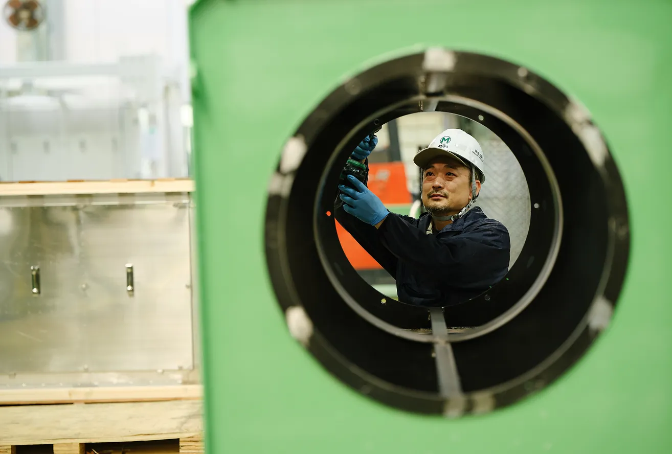 私は現在、鉄板などから部品を製作するための溶接、出来上がった部品の塗装、さらにそれらを使った組立て作業を担当しています。