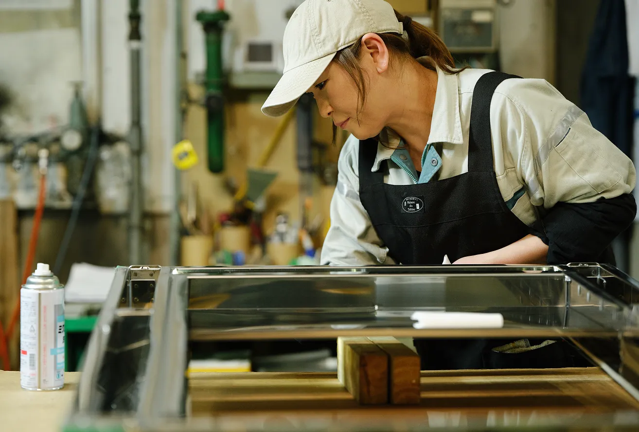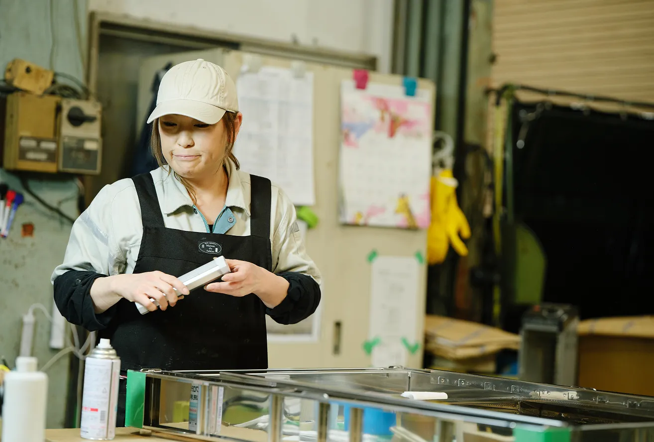 私は仕上げ作業を担当しており、溶接後の部品に対するバリ取り、焼け取り、水洗い、充填剤の注入、パッキン貼りなどを行っています。